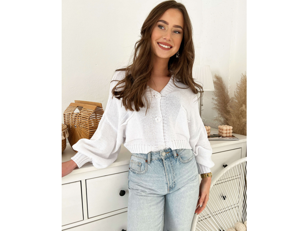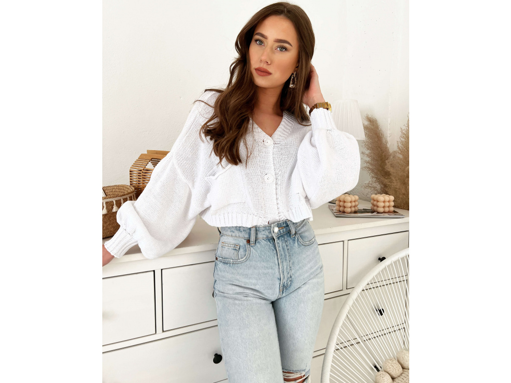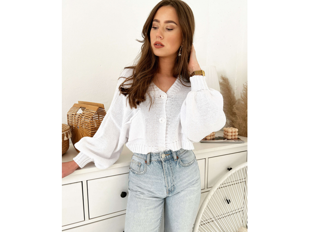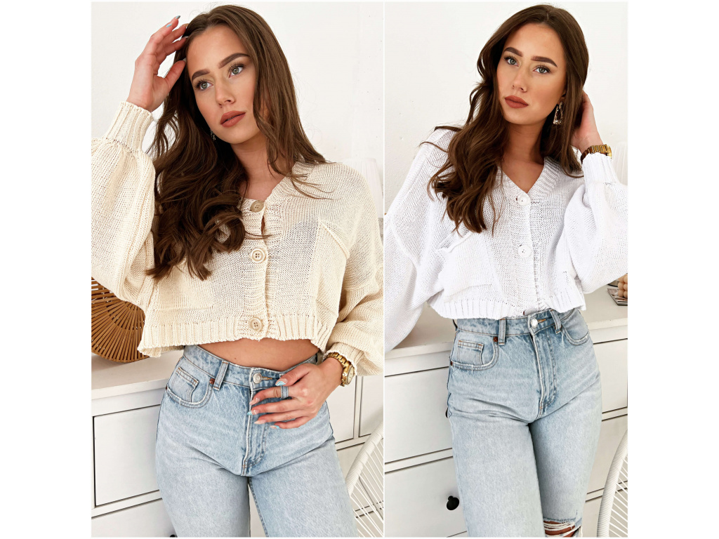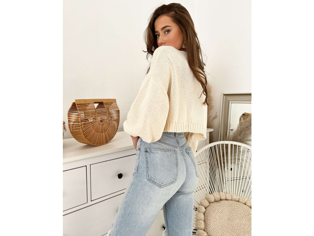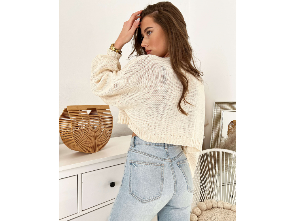Moc příjemný svetr v bílé a béžové barvě kratšího střihu s balónovými rukávy. Velikost je univerzální, sedí na XS, S a M. Foceno je na XS a výšce 170 cm. DOPORUČUJEME! Ohledně rozměrů nás neváhejte kontaktovat.