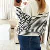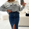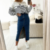 Velice příjemný svetr s proužky a všitým nápisem ''AMOUR PARIS'' na styl Dioru. Barva je bílá a tmavě modrá. Materiál je hodně pružný. Velikost je univerzální, sedí na XS - L. Foceno je na velikosti XS a výšce 165 cm. DOPORUČUJEME!