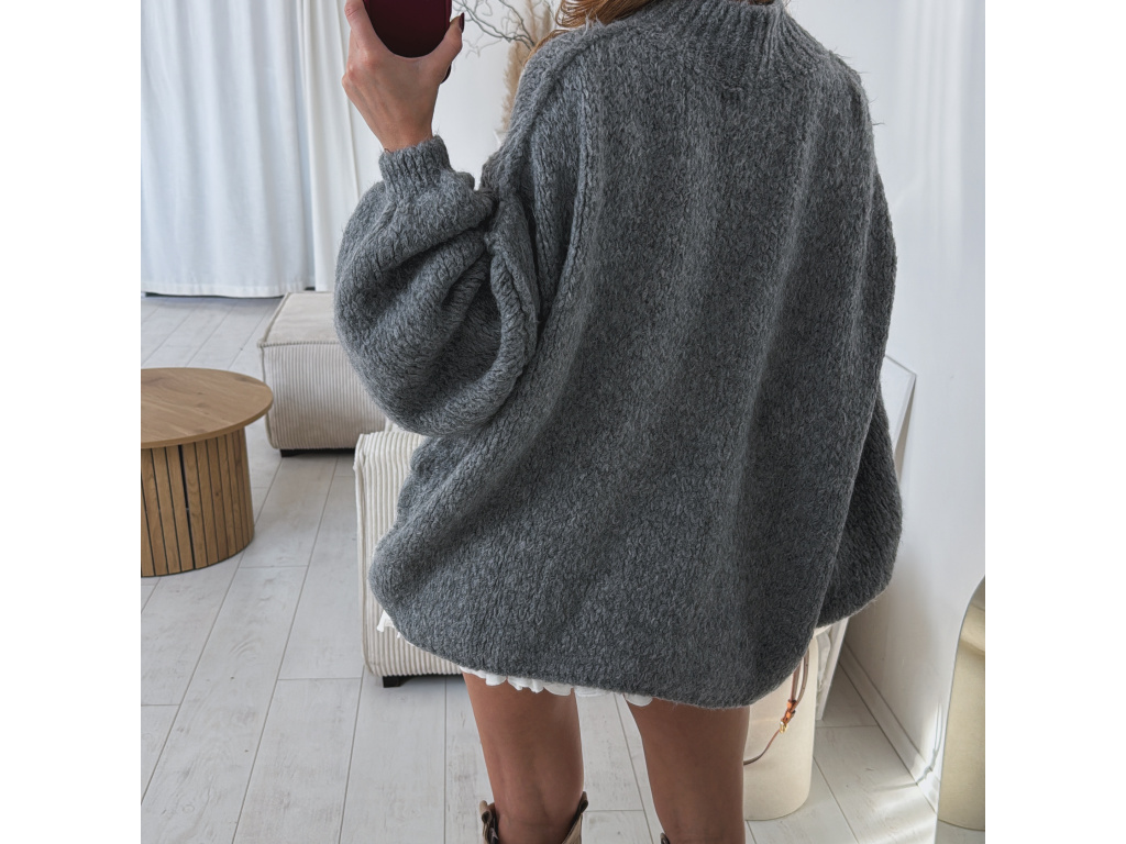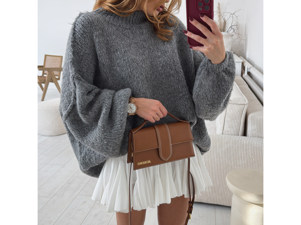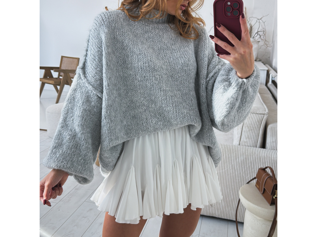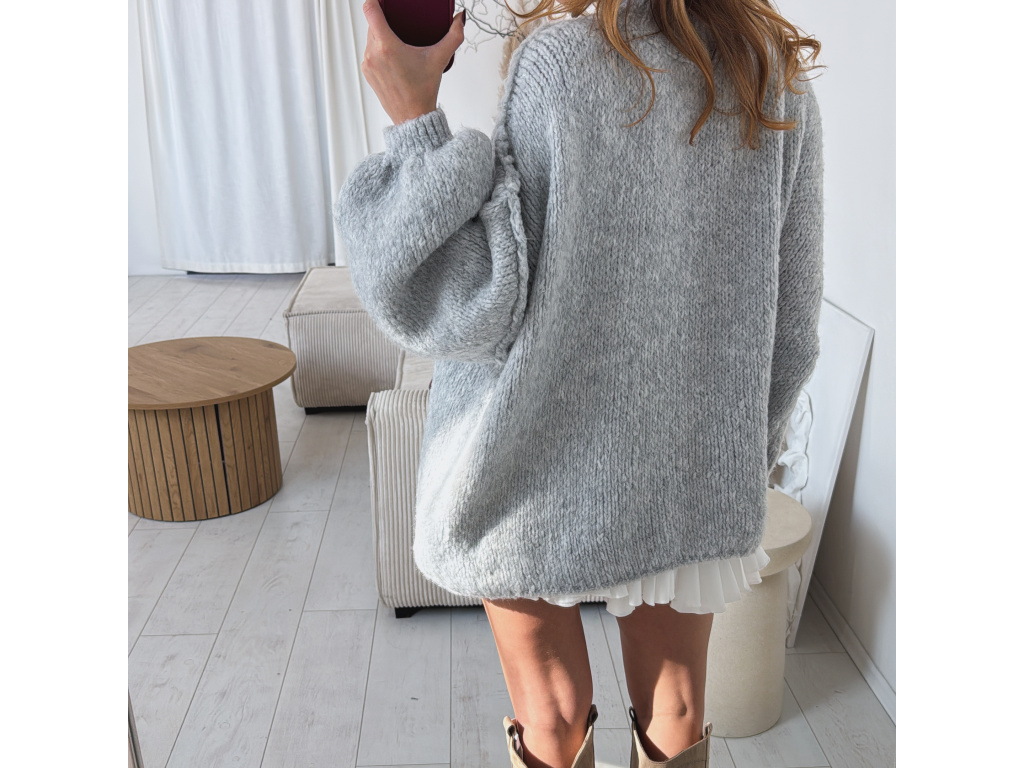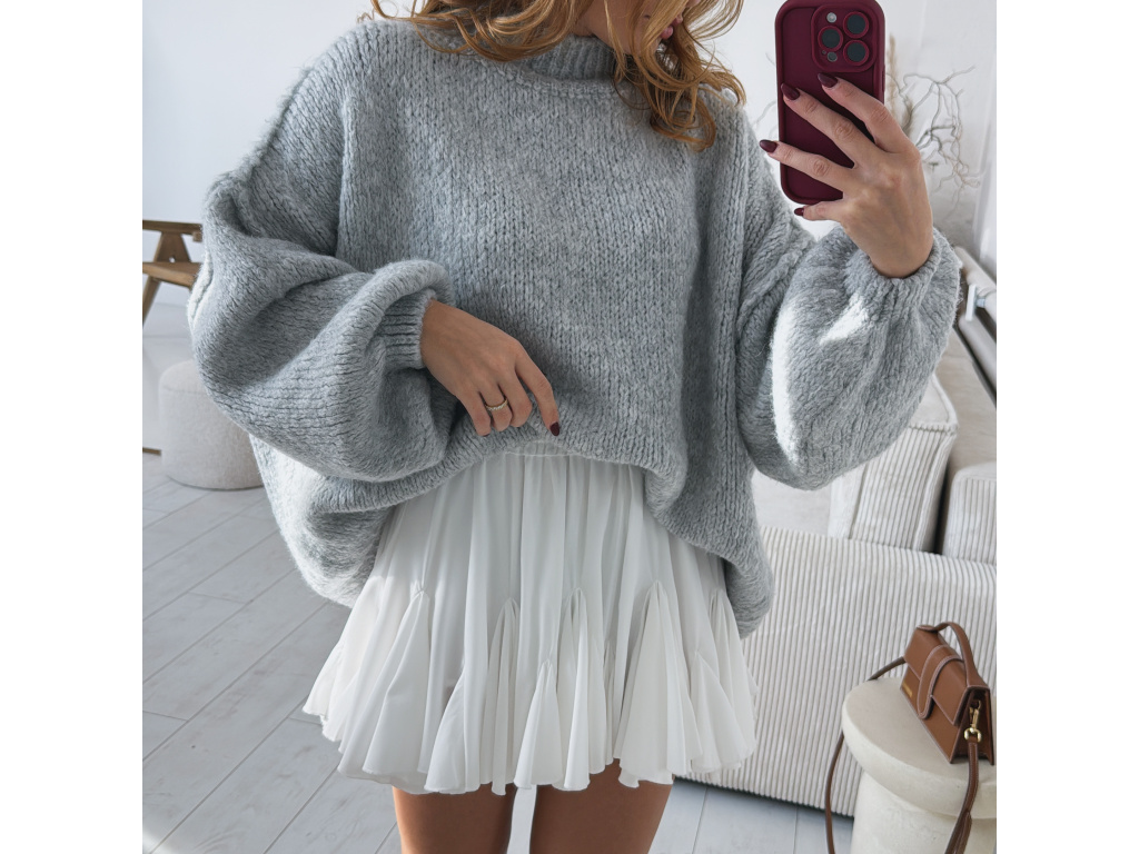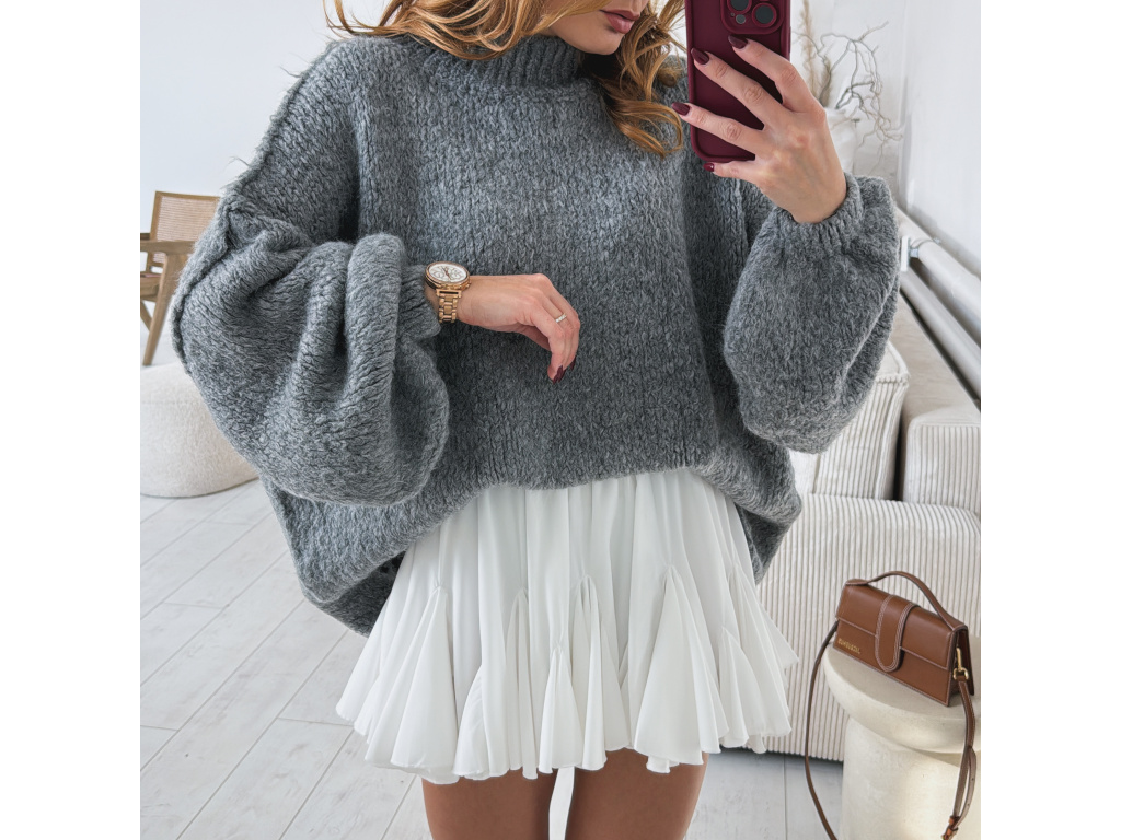 Extra příjemný svetr s podílem vlny velice hezkého oversize volnějšího střihu ve světle šedé a tmavě šedé barvě. Materiál nekouše! Velikost je univerzální, sedí na XS až XL. Foceno je na výšce 165 cm a velikosti XS. Na velikosti XS a S bude svetr volnější.