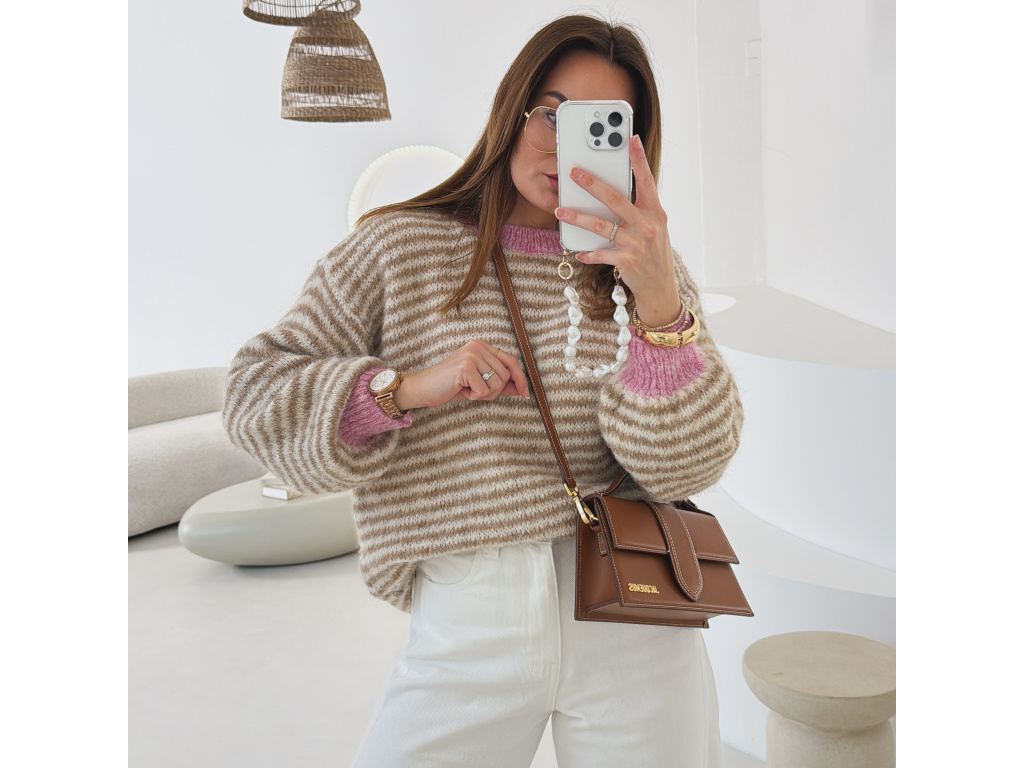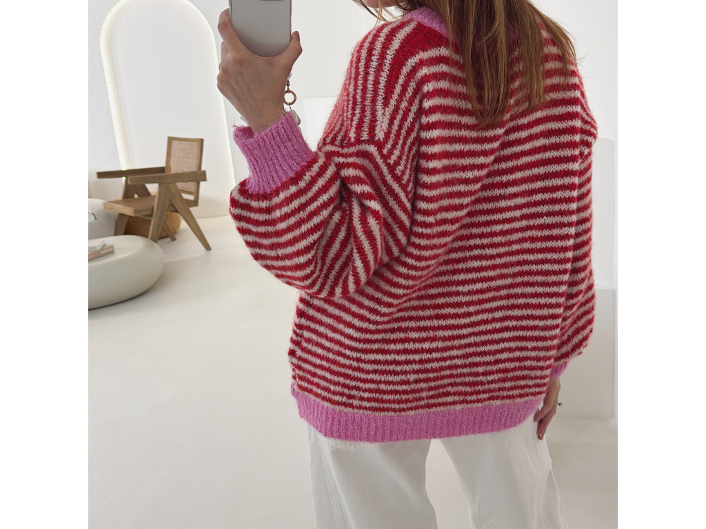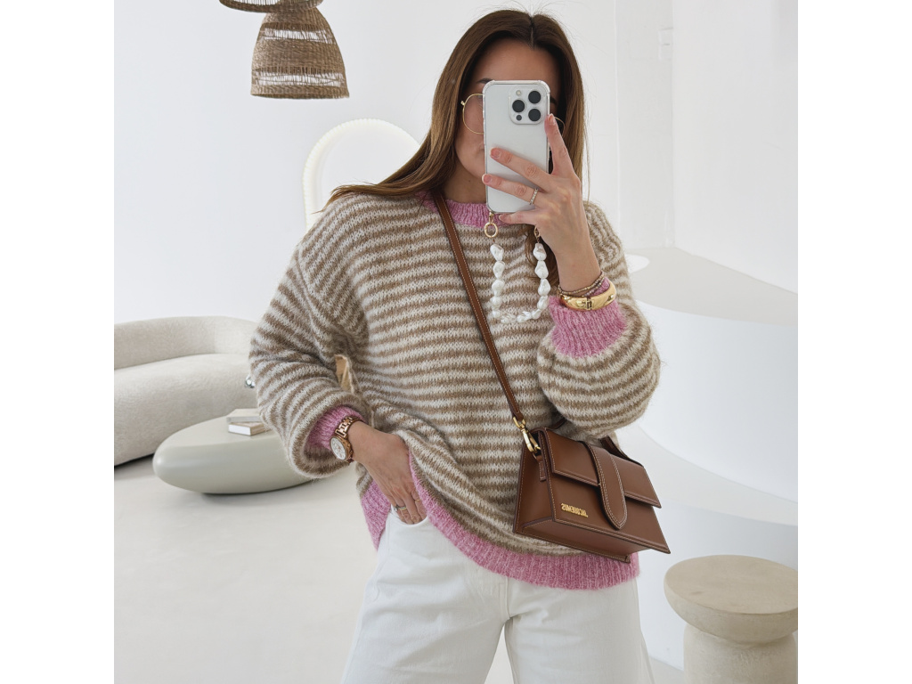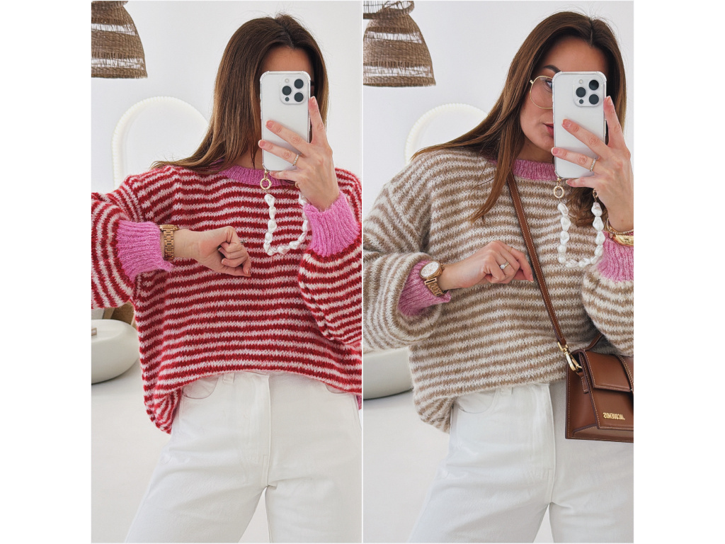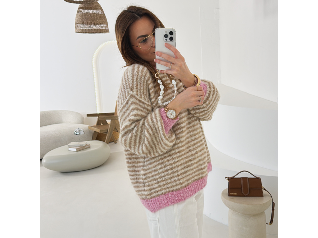 Stylový pruhovaný svetr v nadčasovém designu, který zaujme kombinací jemných barev a kontrastních lemů. Je ušitý z příjemného, měkkého materiálu, který zahřeje a zároveň působí lehce. Volnější střih zajišťuje pohodlí při nošení a snadné kombinování s džínami, kalhotami i sukní. Ideální kousek pro každodenní outfity, kterým dodá hravost a svěží vzhled.