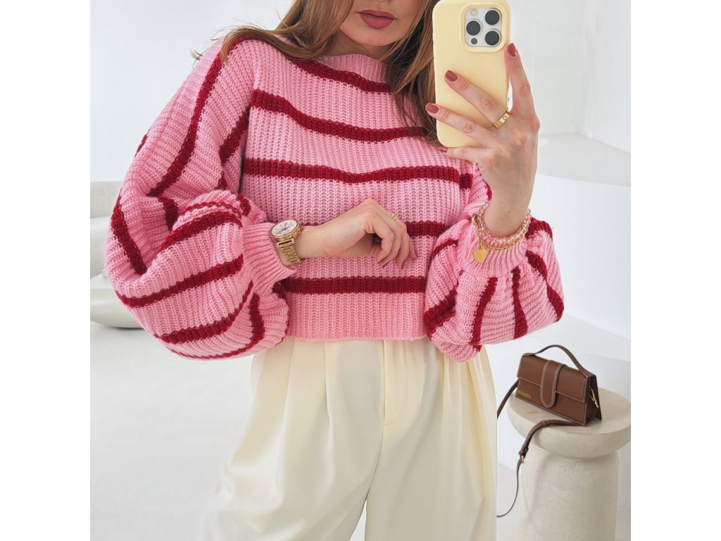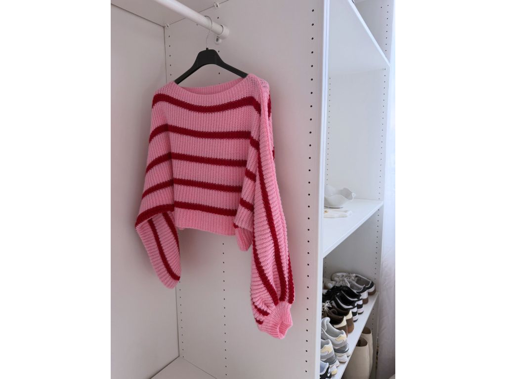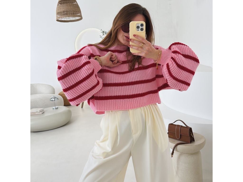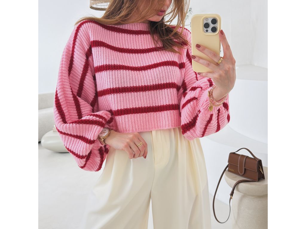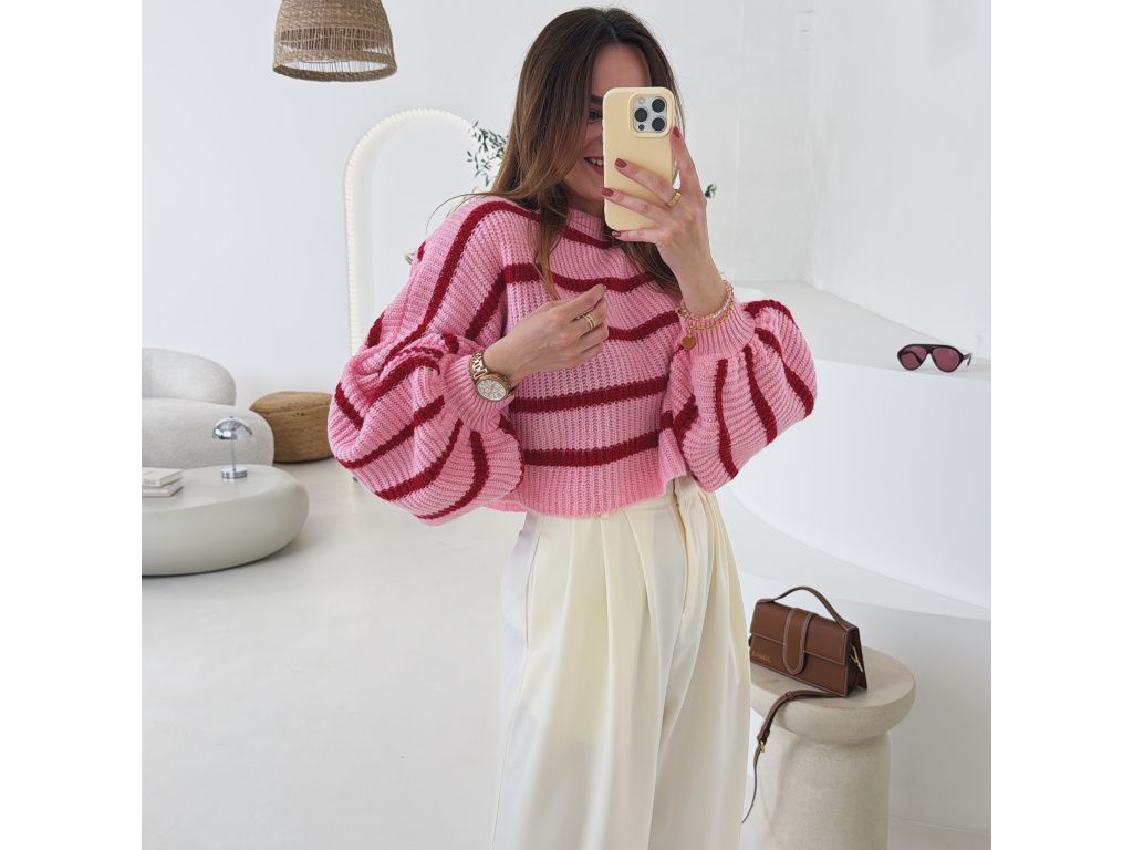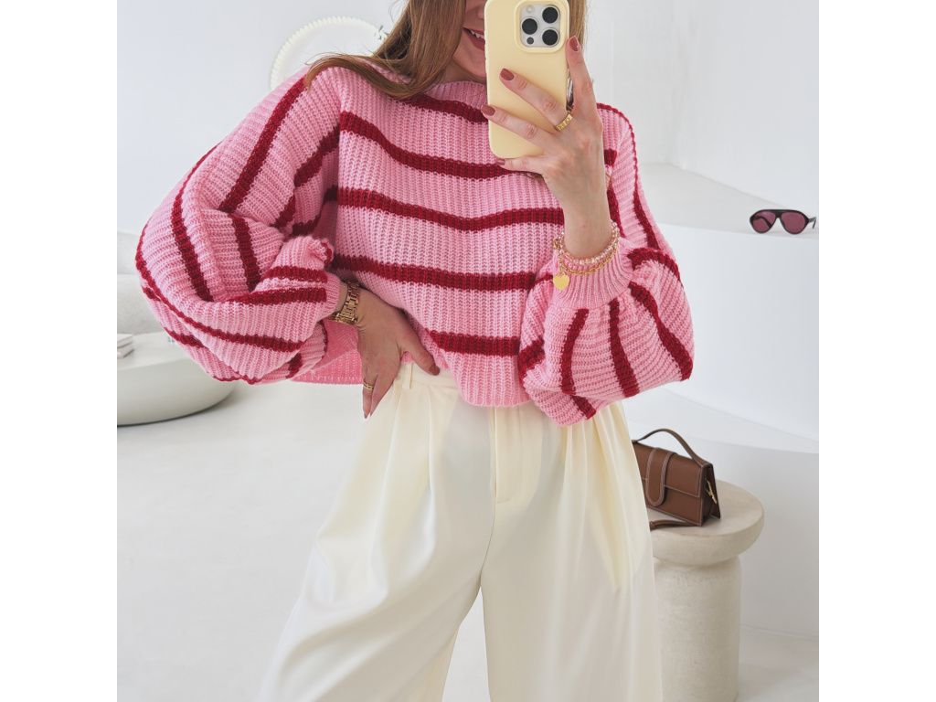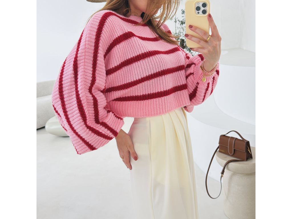 Pruhovaný svetr s balónovými rukávy Zirelle růžový