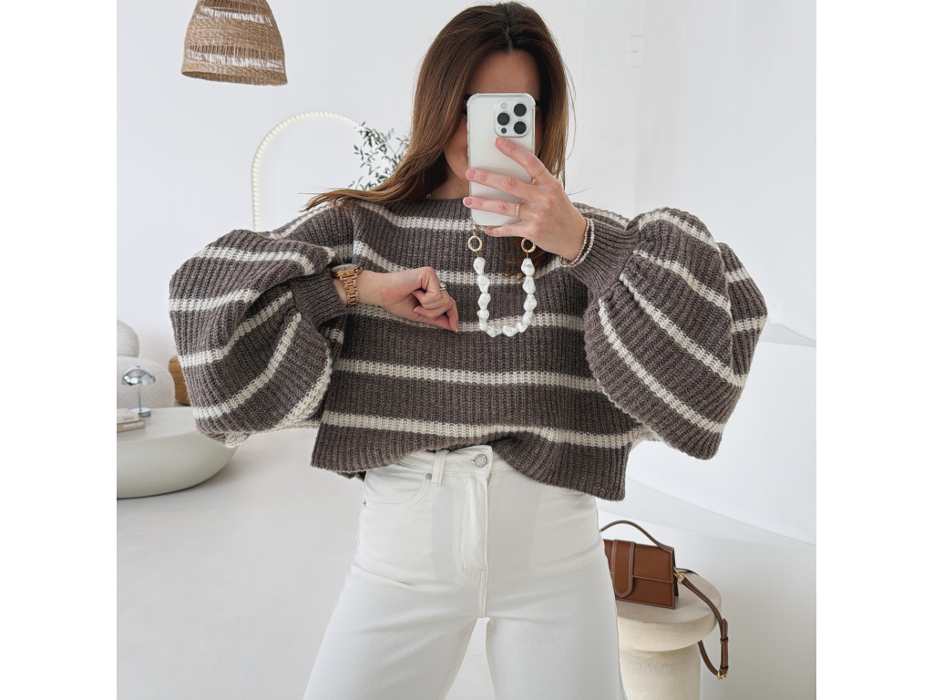 Pruhovaný svetr s balónovými rukávy Zirelle