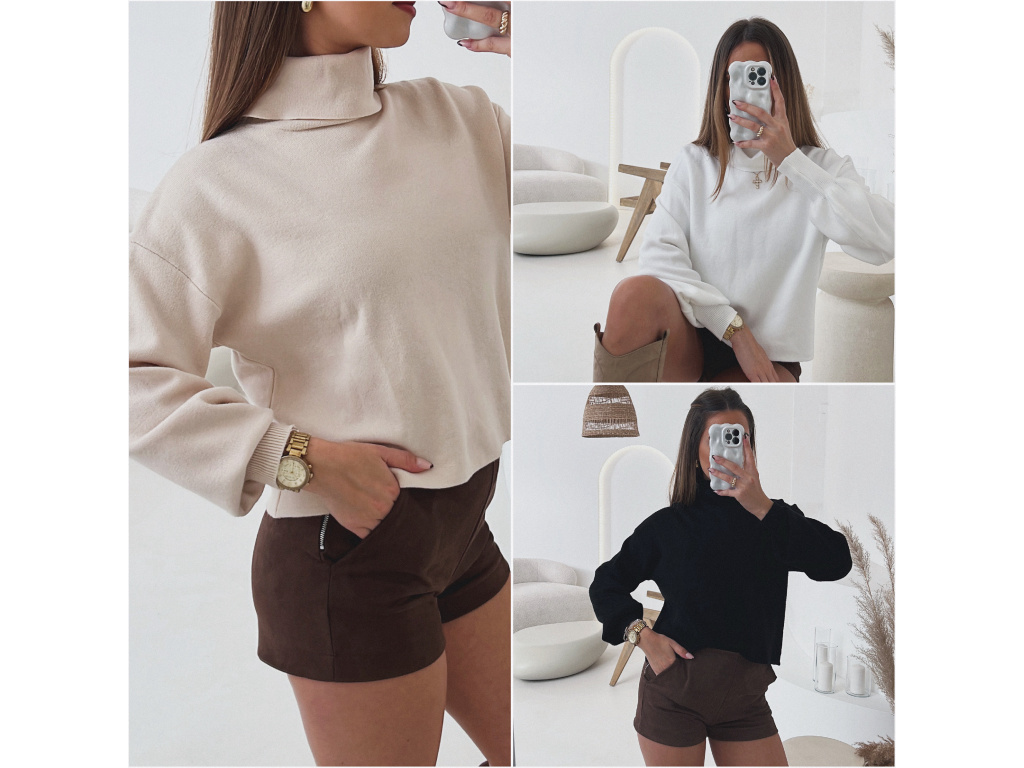 Krátký úpletový svetr Lerine s jemným rolákem je perfektním kouskem pro každodenní i elegantní outfit. Jeho měkký a pružný materiál zaručuje maximální pohodlí a příjemný pocit při nošení. Díky volnějšímu střihu se snadno kombinuje s kalhotami i sukněmi.
