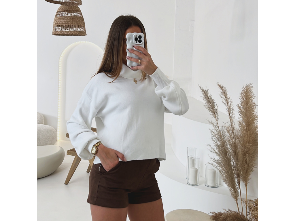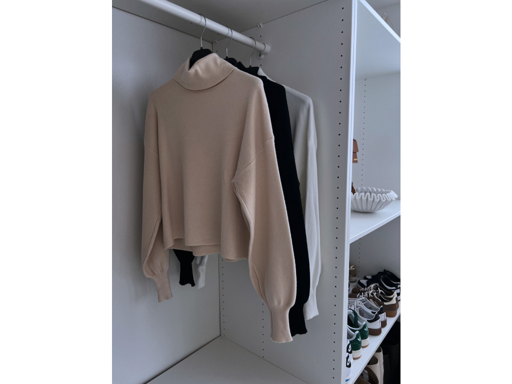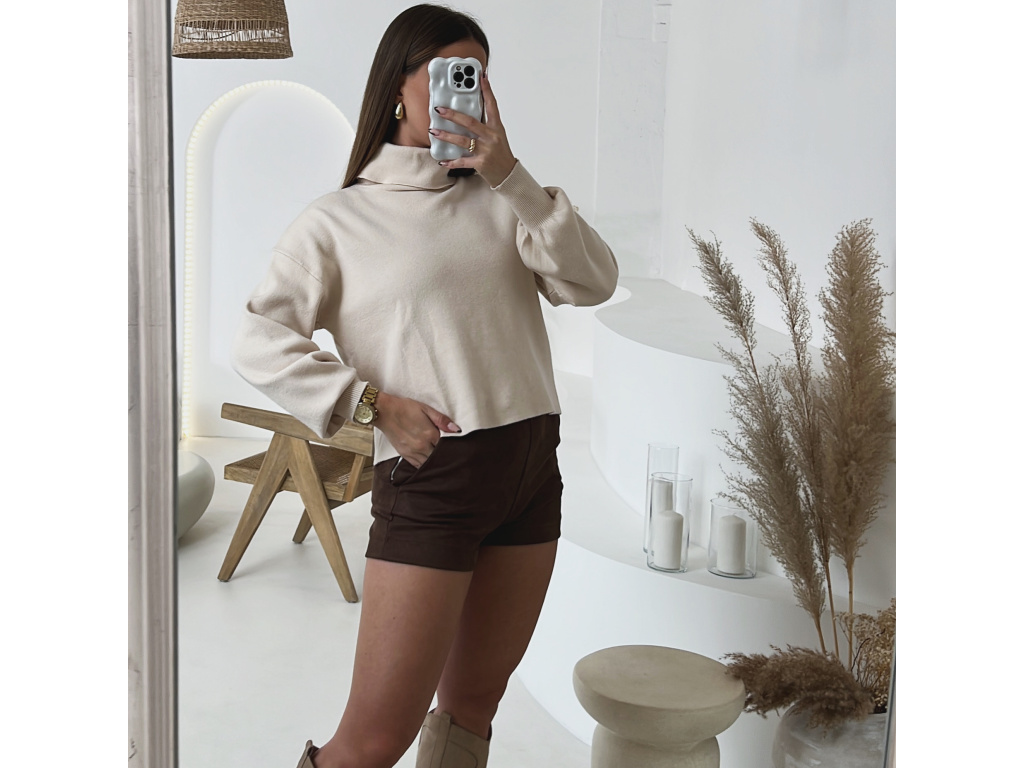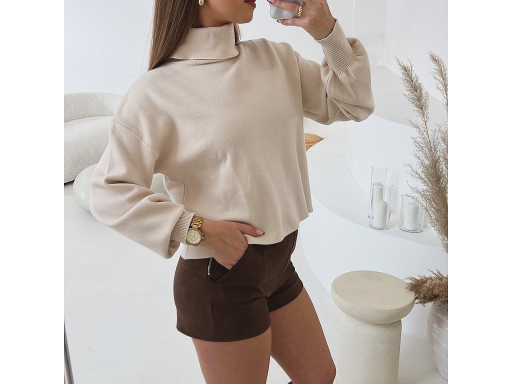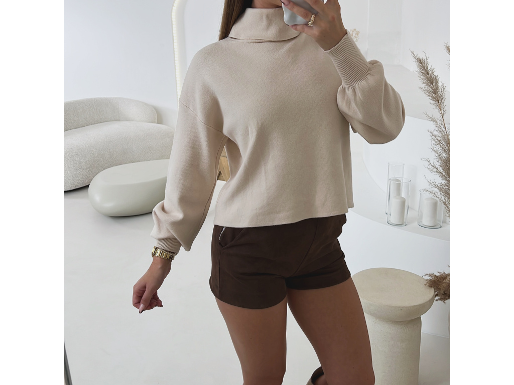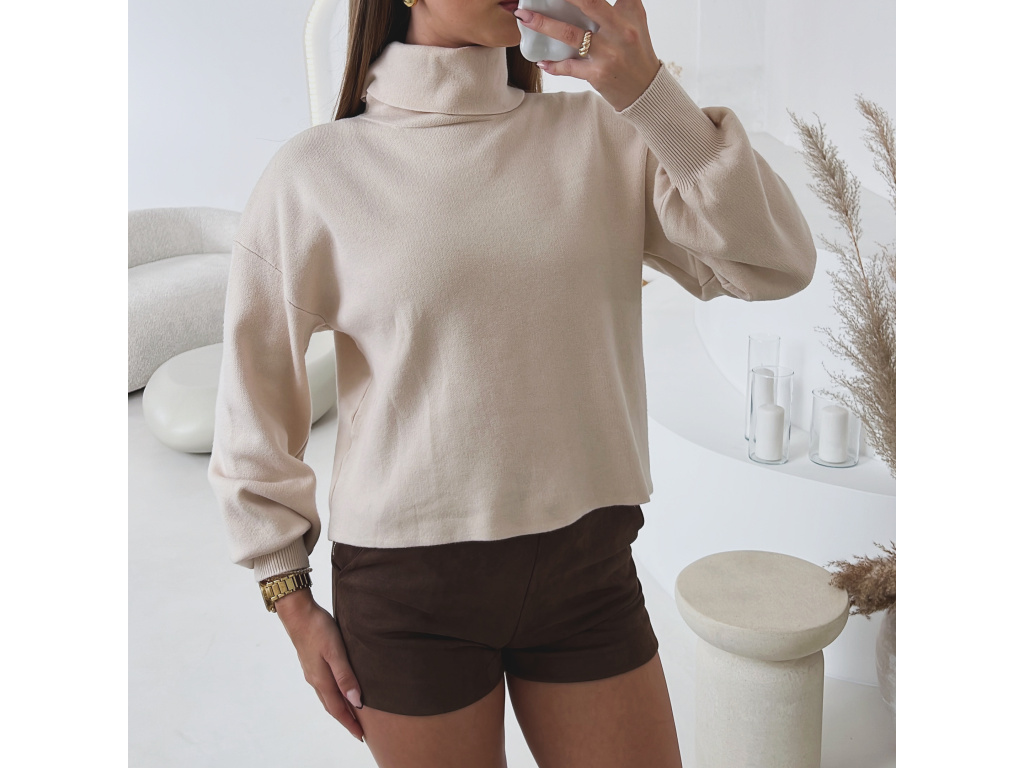 Krátký úpletový svetr Lerine s jemným rolákem je perfektním kouskem pro každodenní i elegantní outfit. Jeho měkký a pružný materiál zaručuje maximální pohodlí a příjemný pocit při nošení. Díky volnějšímu střihu se snadno kombinuje s kalhotami i sukněmi.